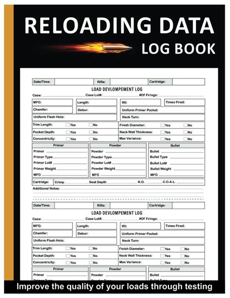 Reloading Log Sheet - Download the official reloading guides of several powder and bullet manufacturers for free to get your desired load data. This data serves as a record of the components and loads tested, allowing for analysis of performance and consistency over time. This free service was created by a group of shooting enthusiasts and long time reloaders. Right click one of the.